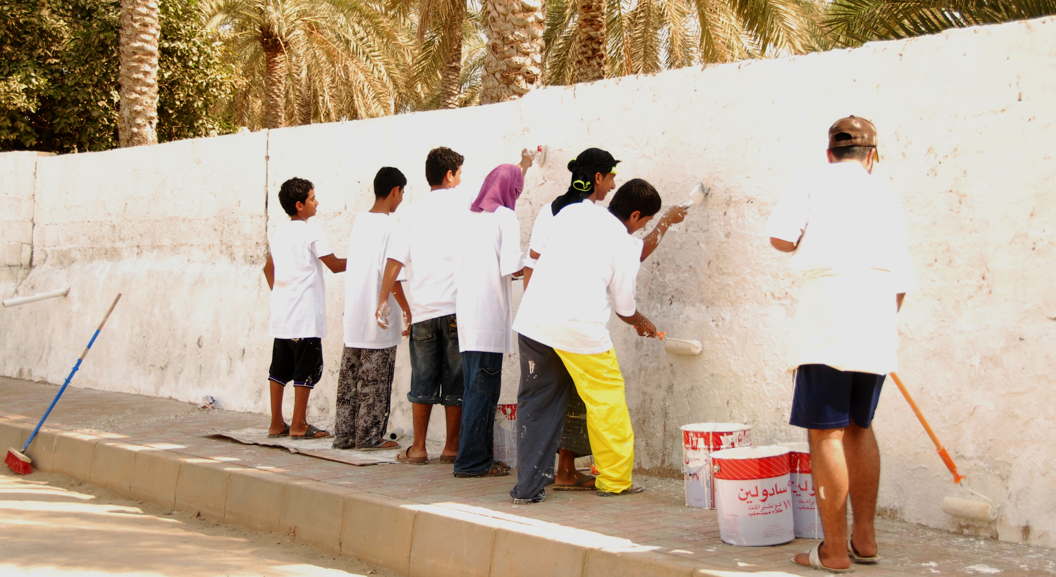 حيث شارك ما يقارب من 100 شخص يمثلون الفرق الأهلية والرياضية ببوشر بجانب عمال البلدية العاملين بأقسام النظافة والشؤون الصحية والأقسام الفنية وتم تقسيم الأعمال بانتظام وتوزيعها على عدة فرق عمل حيث تم مباشرة تنفيذ الأعمال منذ الصباح الباكر وحتى الفترة المسائية .