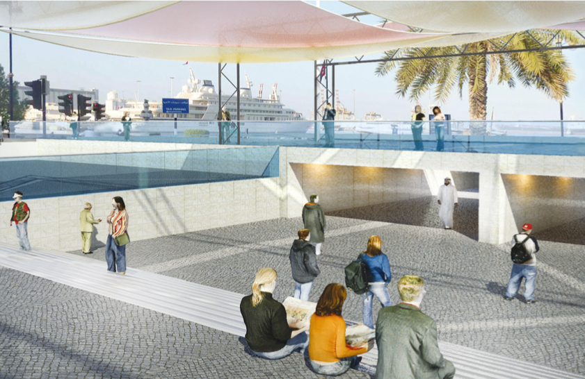كما سيتم إنشاء ممرات المشاة للربط بين المنطقة وممشى الواجهة البحرية ، وتوسيع عرض الممشى ليستوعب حركة المشاة والسياح ، وبناء رصيف بحري أمام السوق لاستخدامه لرسو القوارب الصغيرة والرحلات البحرية .