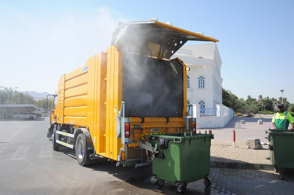 بلدية مسقط تشغل معدات جديدة لغسيل حاويات القمامة