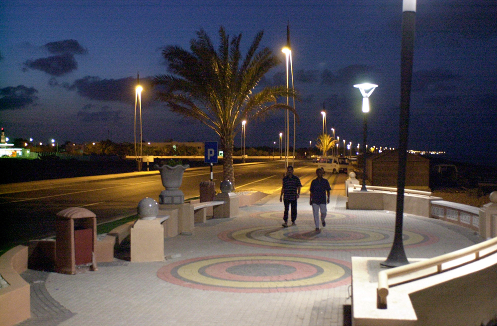 بحي البيضاء ببوشر ، وتطوير متنزه شاطئ العذيبة ، حيث يتضمن مشروع تطوير منطقة حي البيضاء بولاية بوشر تبليط المساحات الترابيـة المحاذية للطريق بالبلاط المتشابك (الإنترلوك) على جانبي طرق الخدمة بالمنطقة بعرض متر ونصف المتر ، ووضع (كربستون) للطريق وإنشاء عدد ( 4 ) حدائق على مساحات مختلفة تتكون من ملاعب كرة قدم و ملاعب الأطفال مزودة بمظلات واستراحات وزراعة الأشجار والزهور وبسط المسطحات الخضراء .
