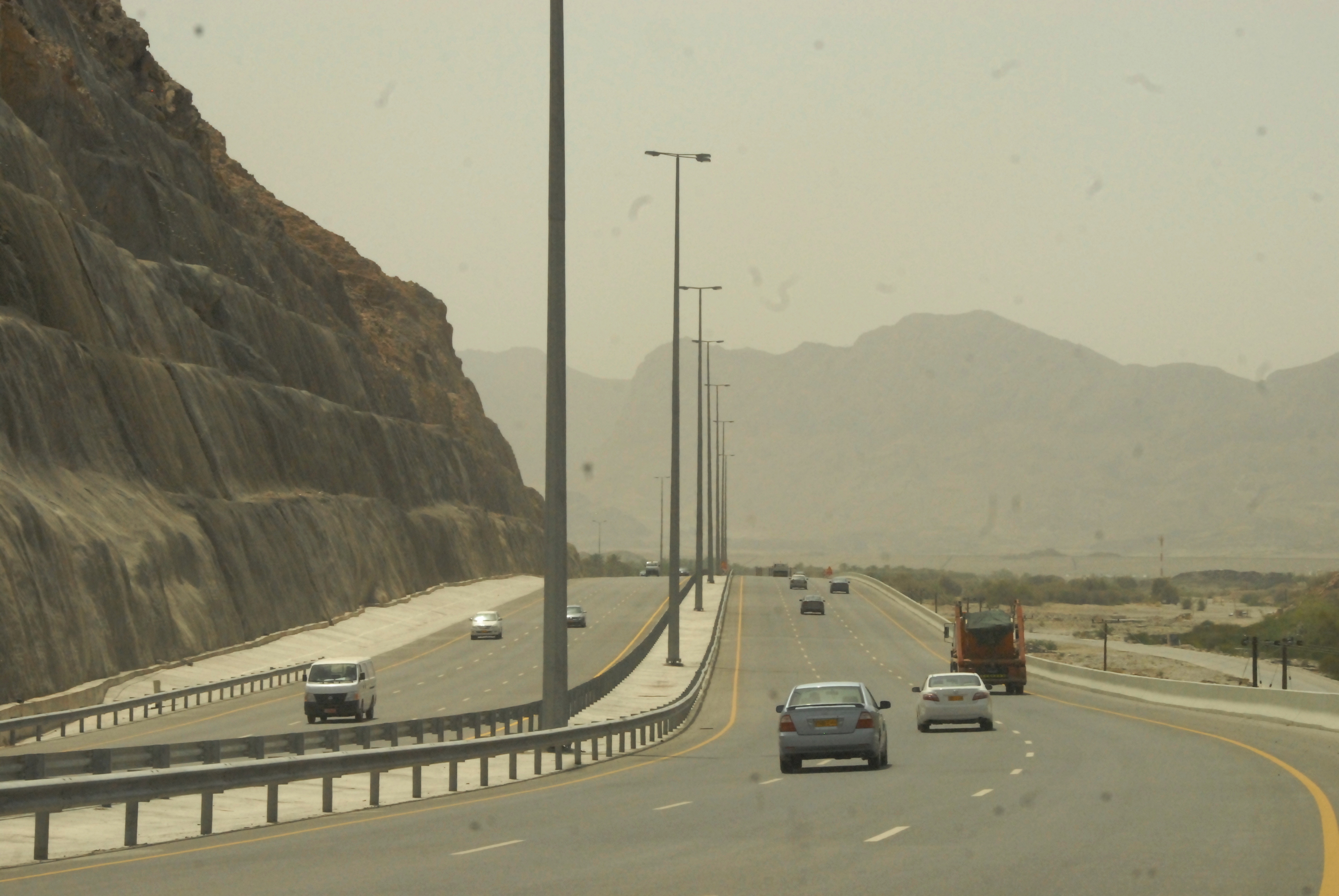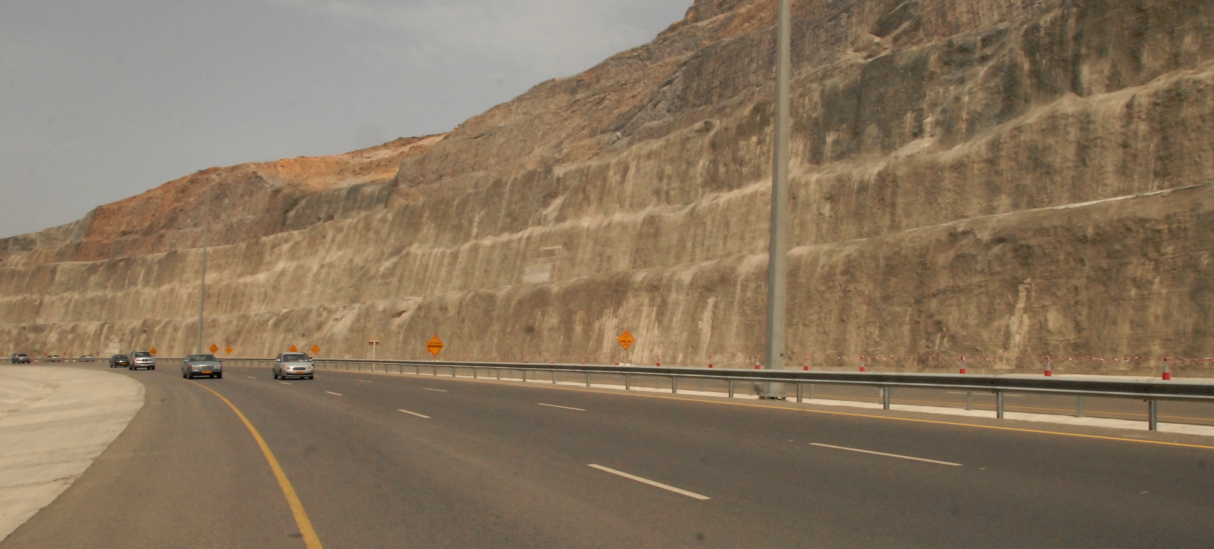 والمشروع يتضمن على جسر كبير يقطع أعلى وادي عدي و يبلغ طوله 180مترا وبارتفاع 50.5مترا والذي يعتبر أطول جسر وادي من حيث الارتفاع على مستوى السلطنة , ويقع الجسر عند نقطة انتقال الشارع من ضفة الوادي الشرقية إلى ضفته الغربية ، مع تنفيذ عبارات صندوقية في مواقع مختلفة على طول مسار الطريق لتصريف مياه الأودية على جانبي الطريق حيث يبلغ عددها 13 عبارة بمقاسات مختلفة ، منها 4م x 4 م ومنها 3م x3م ومنها 3م x 2م في عدد من المواقع في المشروع وعلى مجاري الأودية . وبلغت كمية القطع الإجمالية بالمشروع ما يزيد عن( 5,5 ) خمسة ملايين ونص المليون متر مكعب، أما بالنسبة إلى كمية الردم الإجمالية فقد فتقدر بأكثر من 5 ملايين متر مكعب . كما تتواصل أخر أعمال المشروع بعمل الحمايات الإسمنتية للجبال المحاذية للطريق لتثبيتها ولمنع تساقط الحجارة ، وعمل مدرجات وأرصفة بالحصى والاسمنت على الارتفاعات المطلة على مجرى الوادي .