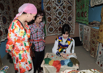 وتتنوع المعروضات التراثية والحرفية الموجودة بالجناح لتبرز بشكل جلي الإرث الحضاري الزاخر لجمهورية أوزبكستان ، ومن ضمن الحرف المشاركة بالجناح حرفة صناعة السجاد والقبعات والملبوسات الأوزبكية التي تبهرك بألوانها الزاهية وبدقة حياكتها وهذا يجعلها تنفرد بذوق حرفي رفيع مقارنة مع غيرها من أزياء الشعوب ...
