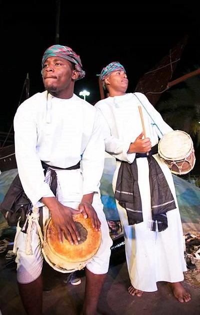 ويلتف حول فرق الفنون الشعبية العمانية زائرو فعاليات المهرجان أثناء تجوالهم بين اروقته سواء لأخذ الصور التذكارية او الرقص معهم والاستمتاع بتجوالهم بين الناس وهم برقصون على دقات الطبل والمزمار العماني بقوالب موسيقى تراثية ، وتقوم هذه الفرق بتأدية الفنون العمانية التراثية والشعبية بجميع أنواعها والتي تتمثل بفنون السيف مثل فن الرزحة والعيالة واليولة وفنون البادية كالونّة والتغرود وفنون البحر وفنون المناسبات الاجتماعية مثل البرعة والهبوت وغيرها من الفنون التي يمارسها الرجال والنساء معا .