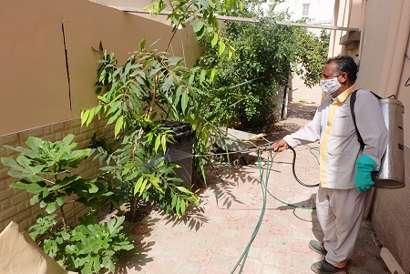 من جانب آخر يجري التركيز في العمل على نطاق واسع بنظام ( الرش الشامل) بحيث يغطي أكثر من نصف كيلو متر في الموقع من جميع الاتجاهات، كما استخدمت فرق المكافحة في عمليات الرش مكائن متخصصة معتمدة من منظمة الصحة العالمية، وتطبيق برنامج استثنائي يستهدف دخول المنازل بالتنسيق مع الفرق المشاركة في الحملة.
