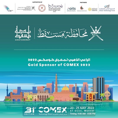 تأكيدًا على فوز مسقط كعاصمة عربية رقمية لعام 2022م، ومواكبة لأهمية الحدث –تشارك- محافظة مسقط بفئة الراعي الذهبي لمعرض تقنية المعلومات والاتصالات (كومكس 2022) بنسخته الحادية والثلاثون خلال الفترة من (23-25) مايو وذلك بمركز عمان للمؤتمرات والمعارض، حيث تأتي مشاركة المحافظة ممثلة في قطاعات العمل البلدي وسط كوكبة من الجهات والمؤسسات من داخل السلطنة وخارجها، بهدف إبراز الخطوات العملية التي شهدتها مسيرة العمل الجاد في مجال اعتماد التكنولوجيا لتحويل الخدمات واستدامتها إلكترونيًا، إلى جانب تعزيز بنية المنظومة التقنية في المحافظة وتبني المبادرات الرقمية الداعمة للتحول الإلكتروني.