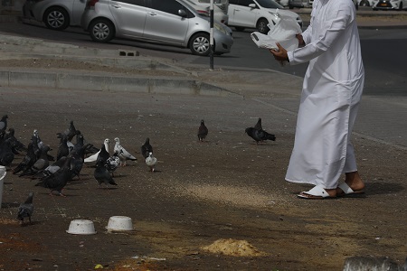تتعدد صور الاحسان وأوجهها إذ كل إحسان لإنسان أو طير أو حيوان هو صدقة وما بين اكتساب الأجر والثواب وتشويه المنظر للساحات العامة في المحافظة تتعارض الآراء في التوجهات حول ظاهرة إطعام الطيور مع الاتفاق على ضرورة أن تُراعى المصلحة العامة إذ يراها البعض ظاهرة تضفي البهجة على النفوس في حين يراها آخرون بأنها مظهر غير حضاري يترتب عليه آثار لاحقة تكبد الدولة أموالاً طائلة في توفير العمالة والآليات لتنظيف الموقع الملوث بيئياً.