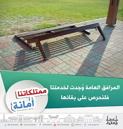 يجدر بالذكر أن بلدية مسقط قد سنت من القوانين والتشريعات ما يكفل حماية تلك المرافق وصونها من أيدي العابثين و استنادًا إلى الأمر المحلي رقم (32/97) بشأن حماية المرافق العامة التابعة لبلدية مسقط،