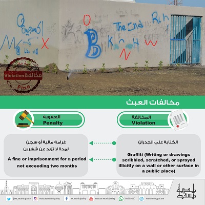 و بهدف الحفاظ على نظافة وجمالية المدينة، وتحقيق الشعور بالانتماء والمسؤولية المشتركة مع أفراد المجتمع يوضح الباحث الإجتماعي في بلدية مسقط - خليل المحرزي " أن مكافحة ظاهرة الكتابة على الجدران من الأولويات التي تتبناها البلدية و تتمثل الجهود لمعالجة مثل تلك الممارسات في تنفيذ حملات التوعية والتثقيف التي تستهدف الشباب والمجتمع المحلي بشكل عام حول خطورة الكتابة على الجدران بما تتضمنه هذه الحملات من عقد ورش عمل، وندوات، ومحاضرات توعوية تشدد على أهمية الحفاظ على الممتلكات العامة والخاصة، إلى جانب عمل برامج تشجيعية ومكافآت لتحفيز الشباب على المشاركة في مبادرات لتنظيف وتجميل المدينة بدلاً من الكتابة على الجدران، كما تقوم البلدية بالعمل على تعزيز الوعي حول العقوبات القانونية التي تفرض على من يرتكبون مثل هذه الممارسات غير المقبولة مما يسهم في تدعيم وتعزيز قيم المسؤولية والاحترام للملكية العامة والخاصة، إضافة إلى اهتمام البلدية بالتعاون مع المجتمع المدني والمنظمات غير الحكومية لتنظيم حملات لإزالة الكتابات على الجدران وإصلاح الممتلكات العامة.