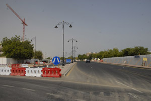 وتجري الأعمال في ربط هذا المشروع لازدواجية الطريق بالجسر القائم بالقرب من وزارة الخارجية والذي صمم بنفس النسق على مسارين في كل اتجاه حيث تم الانتهاء من عمل الأعمدة العرضية وربطها بضفتي الجسر وعمل الخرسانات الاسمنتية وهيكل الجسر تمهيدا لسفلتته ومن ثم عمل الحواجز الوسطية تأمينا للسلامة المرورية .